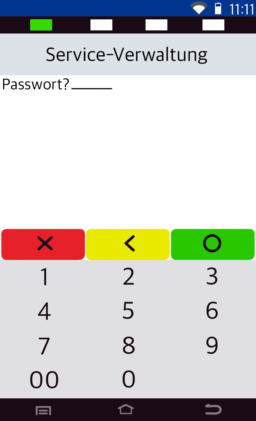 Please enter the 6-digit technician password and confirm the entry with the green OK button.
