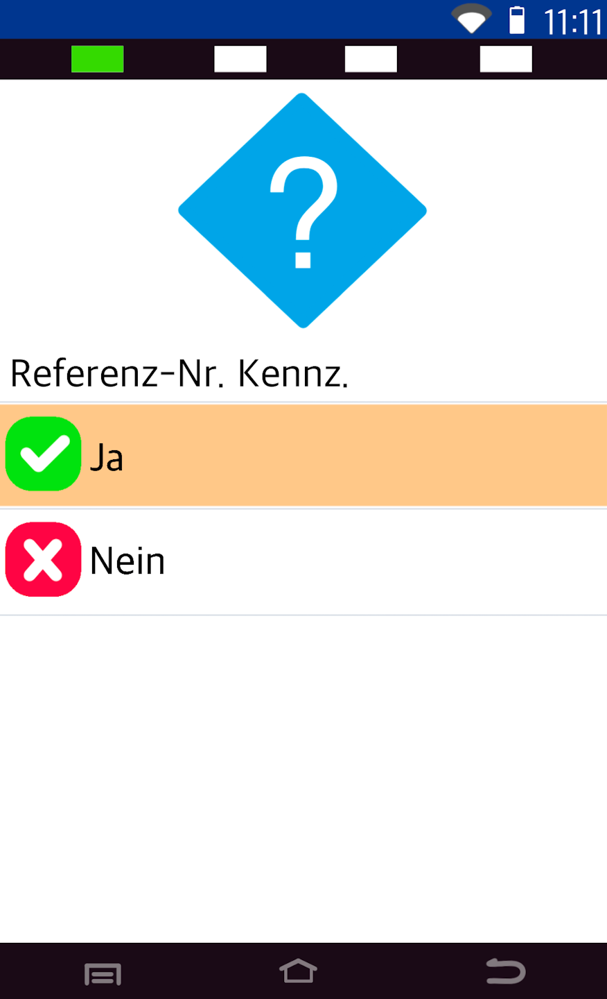 As shown in Fig. 1, please tap Referenz-Nr. Kennz. Activate the option by selecting Yes (Fig. 2).