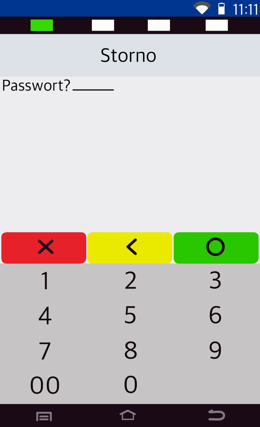 Please enter your 6-digit merchant password and confirm the entry with the green OK button on the display.