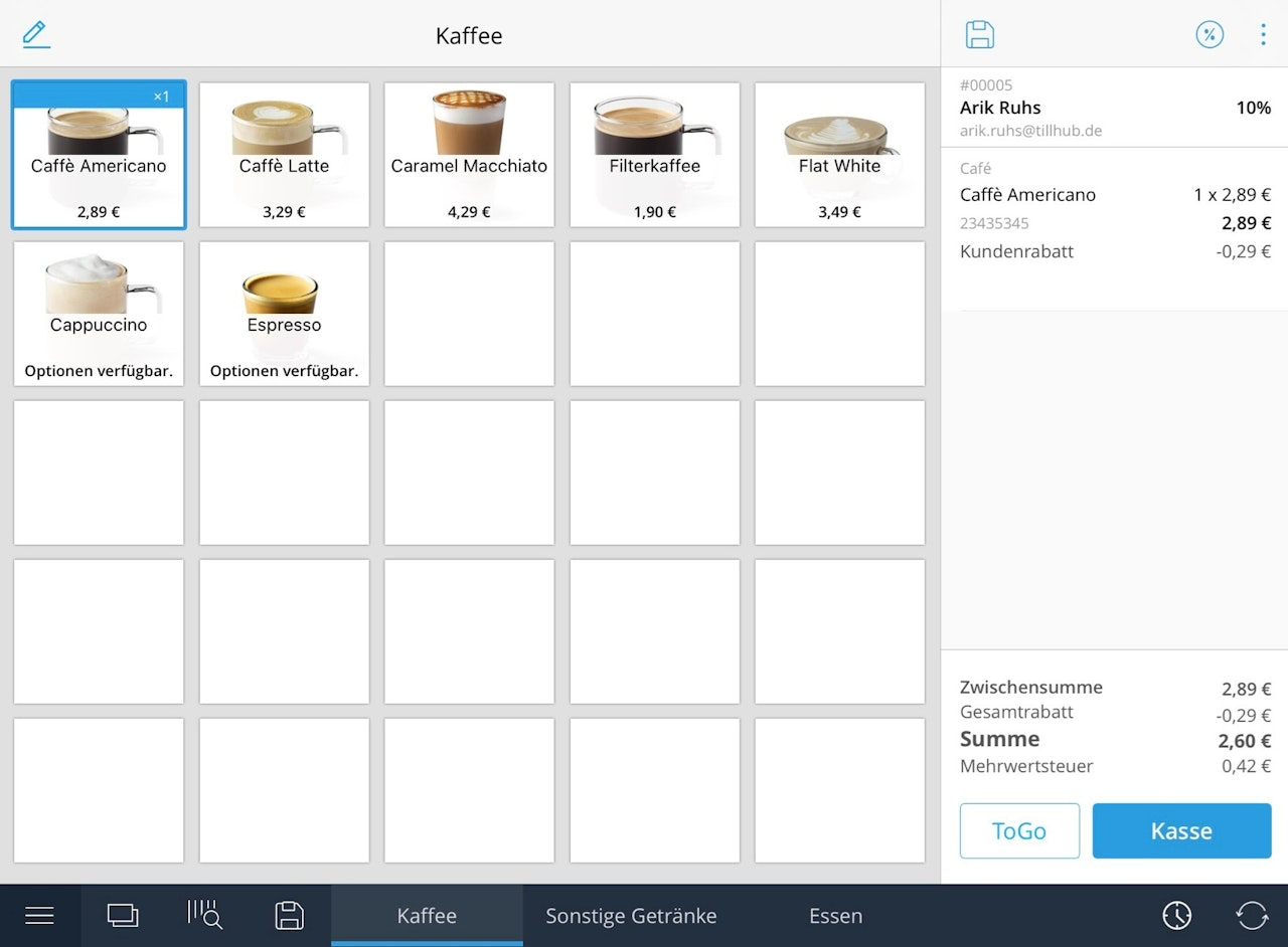 The Tillhub POS system distinguishes between item and cart discounts. Item discounts refer to individual entries that are in your shopping cart, while cart discounts are applied to the entire content of the shopping cart.