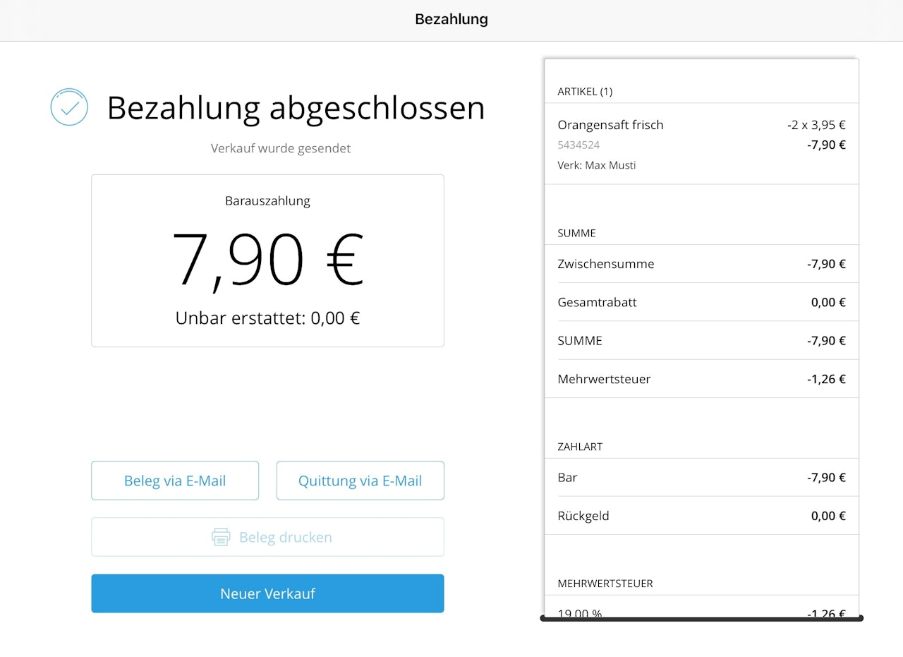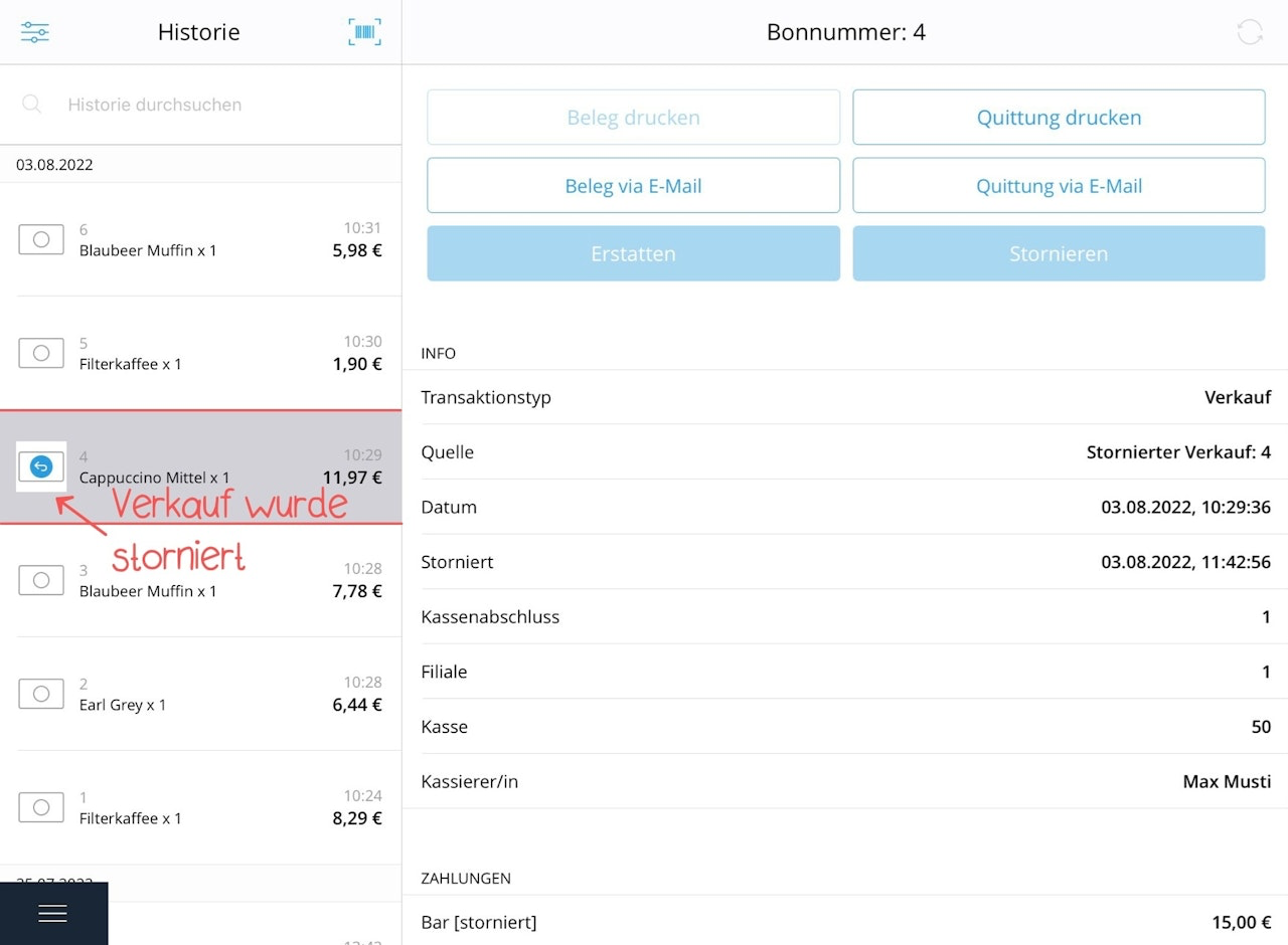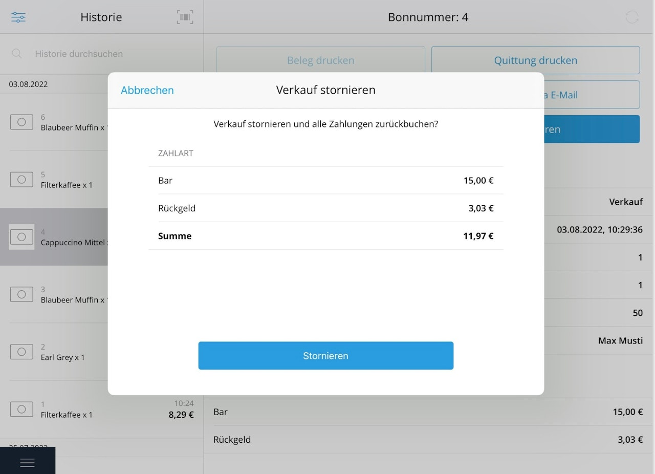 Note: A sale can only be cancelled if no register closing has been performed after the sale.