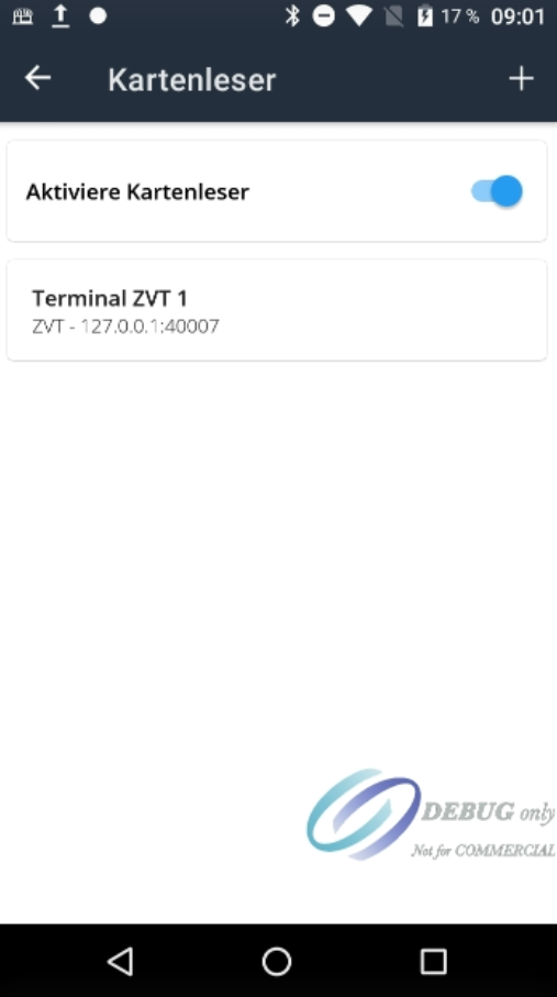 The terminal has now been successfully added. Finally, you can tap the back arrow in the top left to return to the main menu.