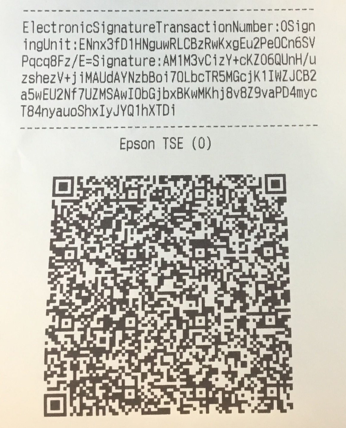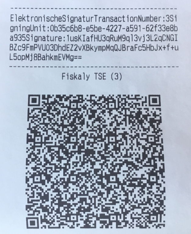 It appears as a unique QR code at the bottom of the receipt. If you do not see this on your receipt, it means the TSE is not working.