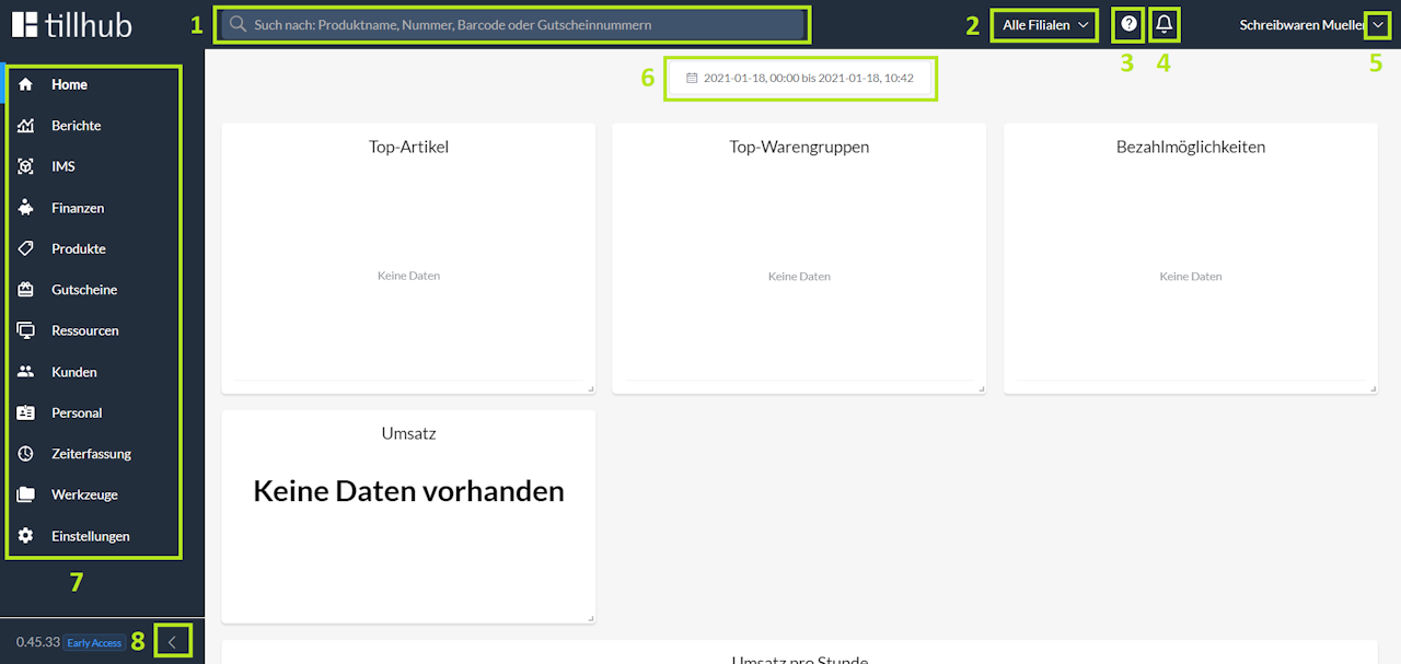 The entire menu on the left side has been extensively expanded and adjusted. All individual menu items are explained in further sections of this Help Center.