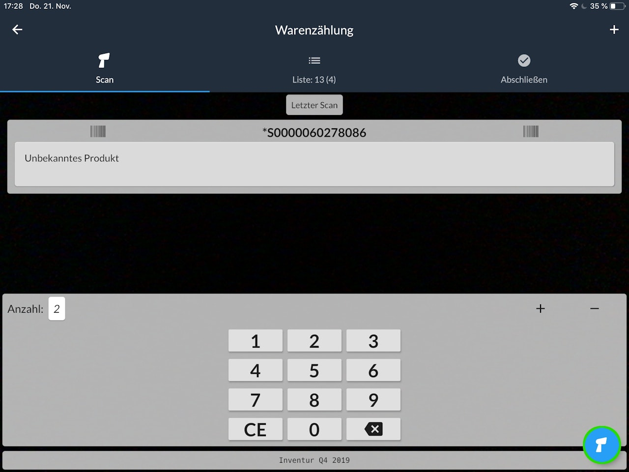 Tip: If the scan fails, add items by tapping the "+" icon at the top right and entering the EAN. This method is a last resort and should be avoided if possible.
