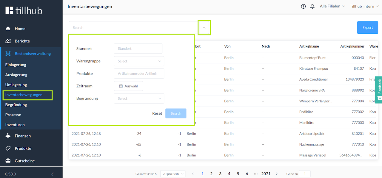 Additionally, you can set various filters via the drop-down menu in the search bar at the top left to capture specific products within certain periods.