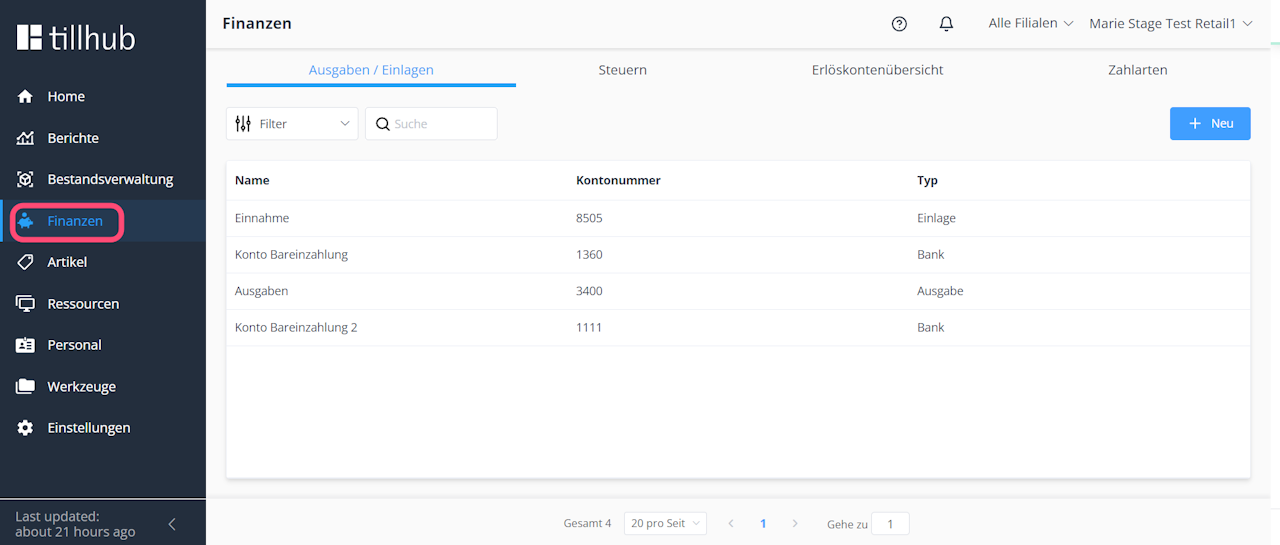 In the “Taxes” and “Revenue Account Overview” sections, you can manage your VAT and revenue accounts. As shown in the previous steps, accounts can be modified or added in the same way. Separate accounts are created for each VAT rate.