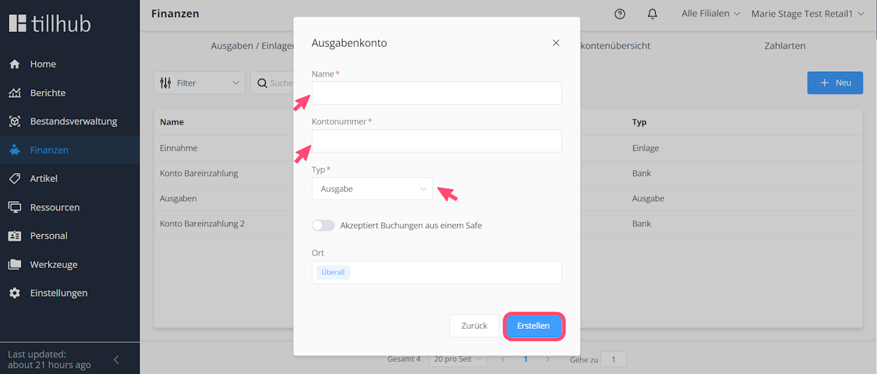 In the “Expenses / Deposits” section, you can create additional accounts at any time after consulting with your tax advisor.