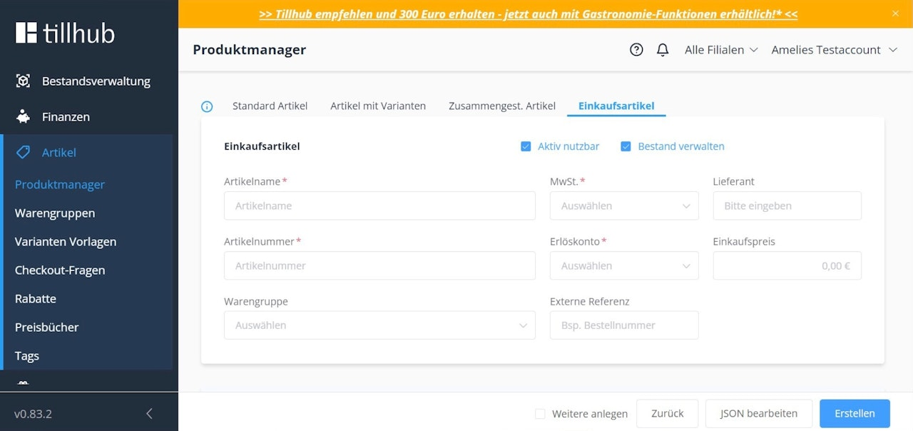 Purchase Item / Ingredient (Tillhub Gastro)