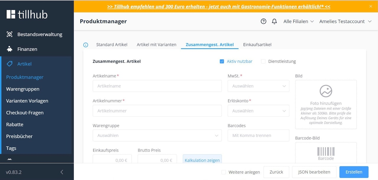 Composite Item / Item with Ingredients (Tillhub Gastro)