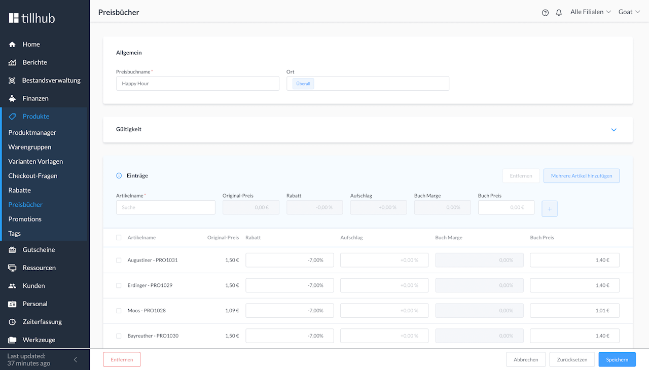 For the future, it is planned to link the price reduction (discount) to a discount from the system instead of replacing the gross price. This enables clear customer communication in line with marketing; the discount is shown on the receipt and thus makes accounting easier.