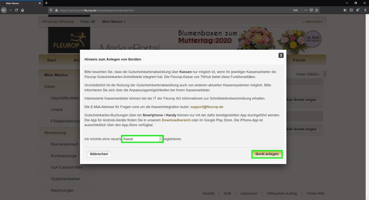 As a customer in the Fleurop network, you can work with a variety of voucher functions. This article shows how to use these functions in the Tillhub POS. If you have already completed this step, the article “Connect Tillhub with the Merkur Portal” explains how to connect the created register to the Tillhub app.