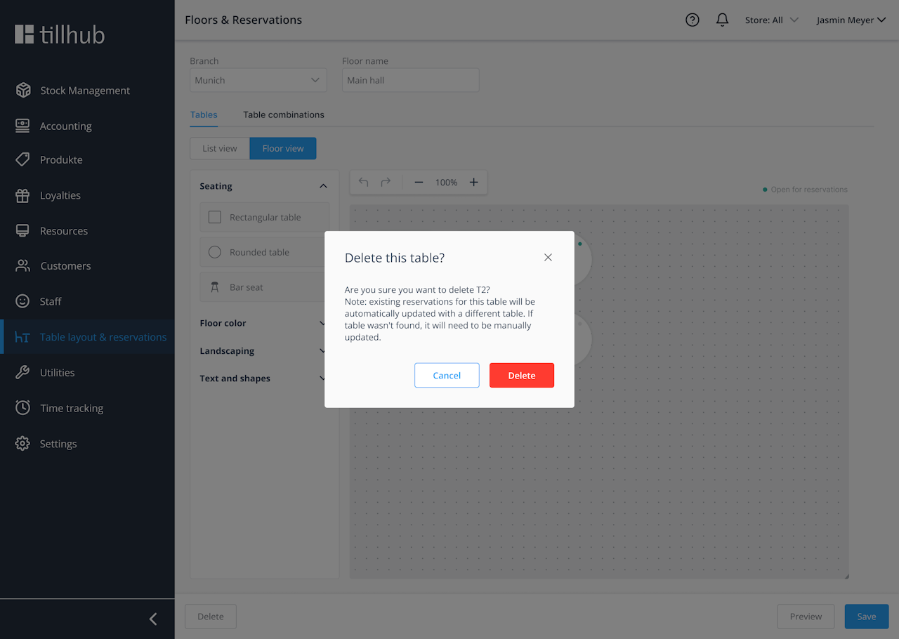 - To delete a table, click the trash icon next to it. Note that any existing reservations for this table will also be deleted.