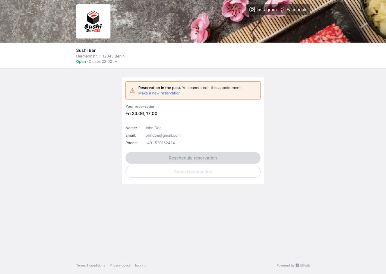 After the deadline for changes and cancellations has passed, existing reservations can no longer be edited. If the booked time has already passed or was missed, only a new reservation can be made.
