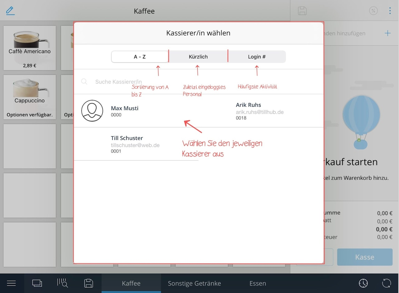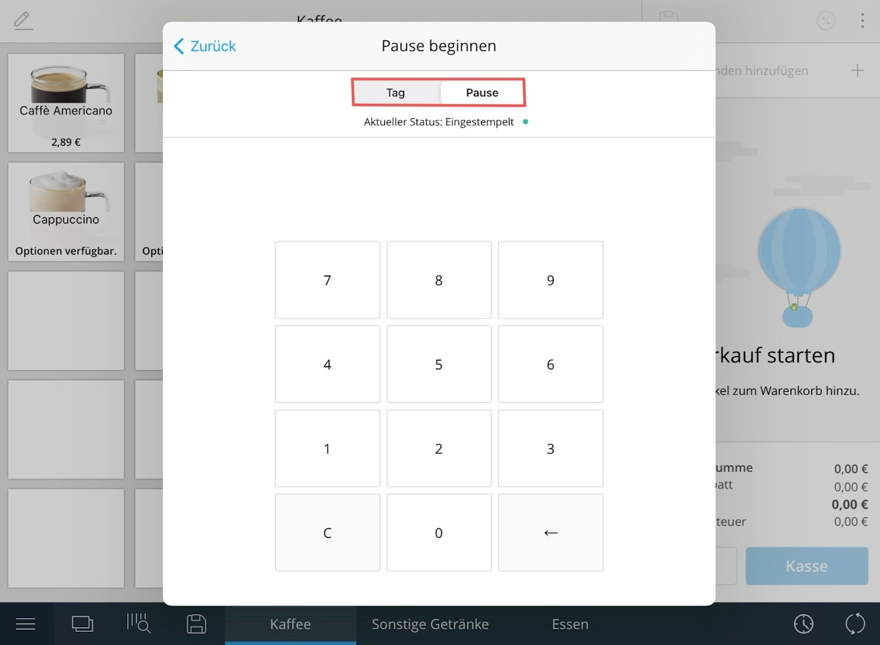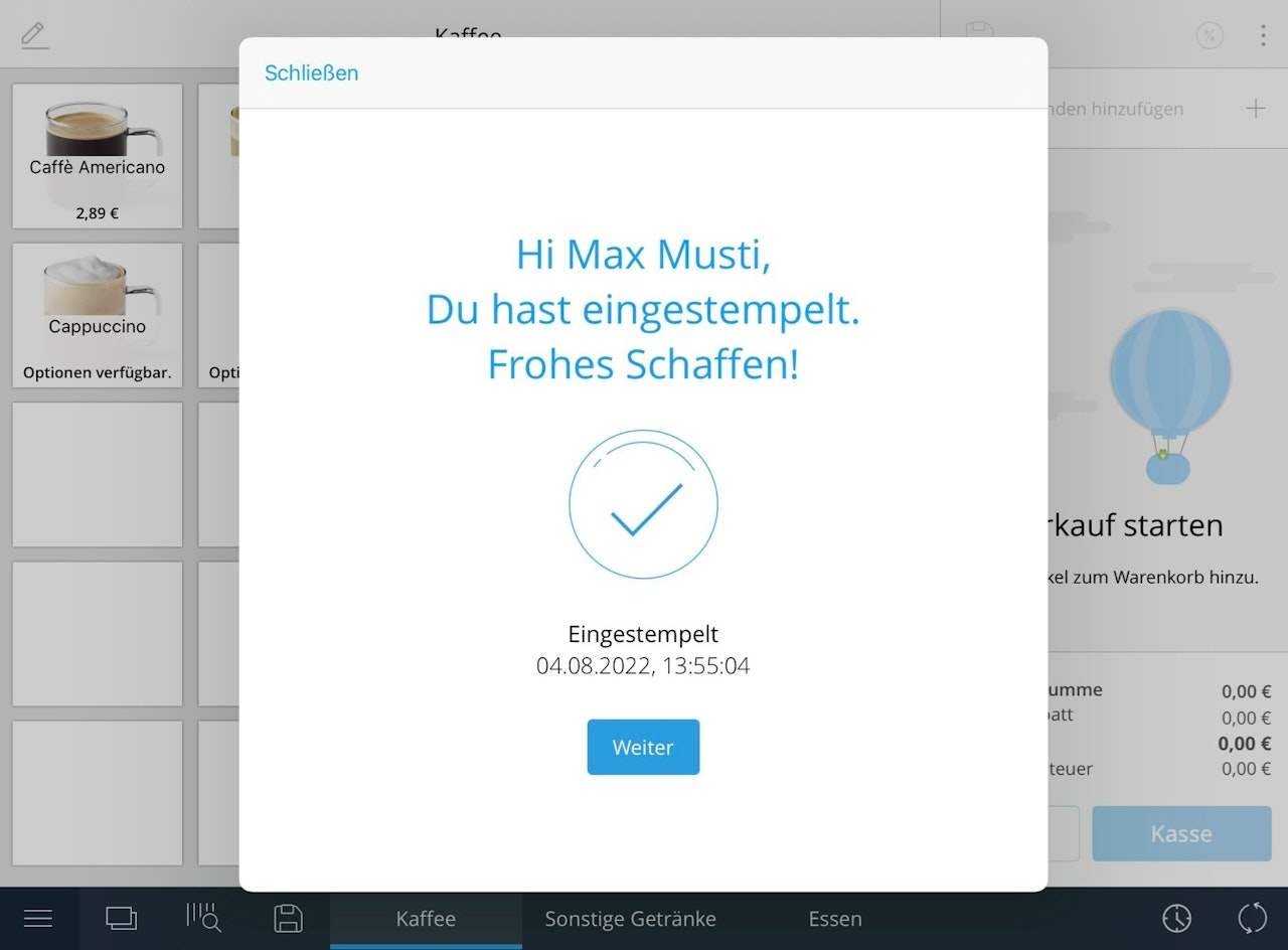 To sign in to a new profile, tap it and log in with the PIN of the respective employee profile.