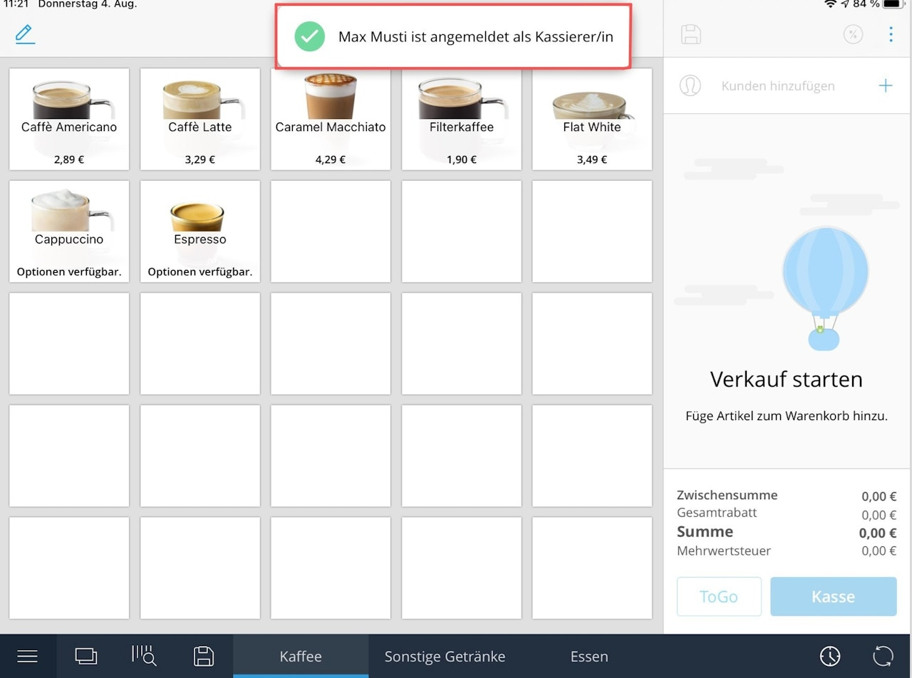 Note: To prevent misuse or misunderstandings, you should always log out as cashier when you are no longer operating the register. This way, the next employee must identify themselves with their PIN.