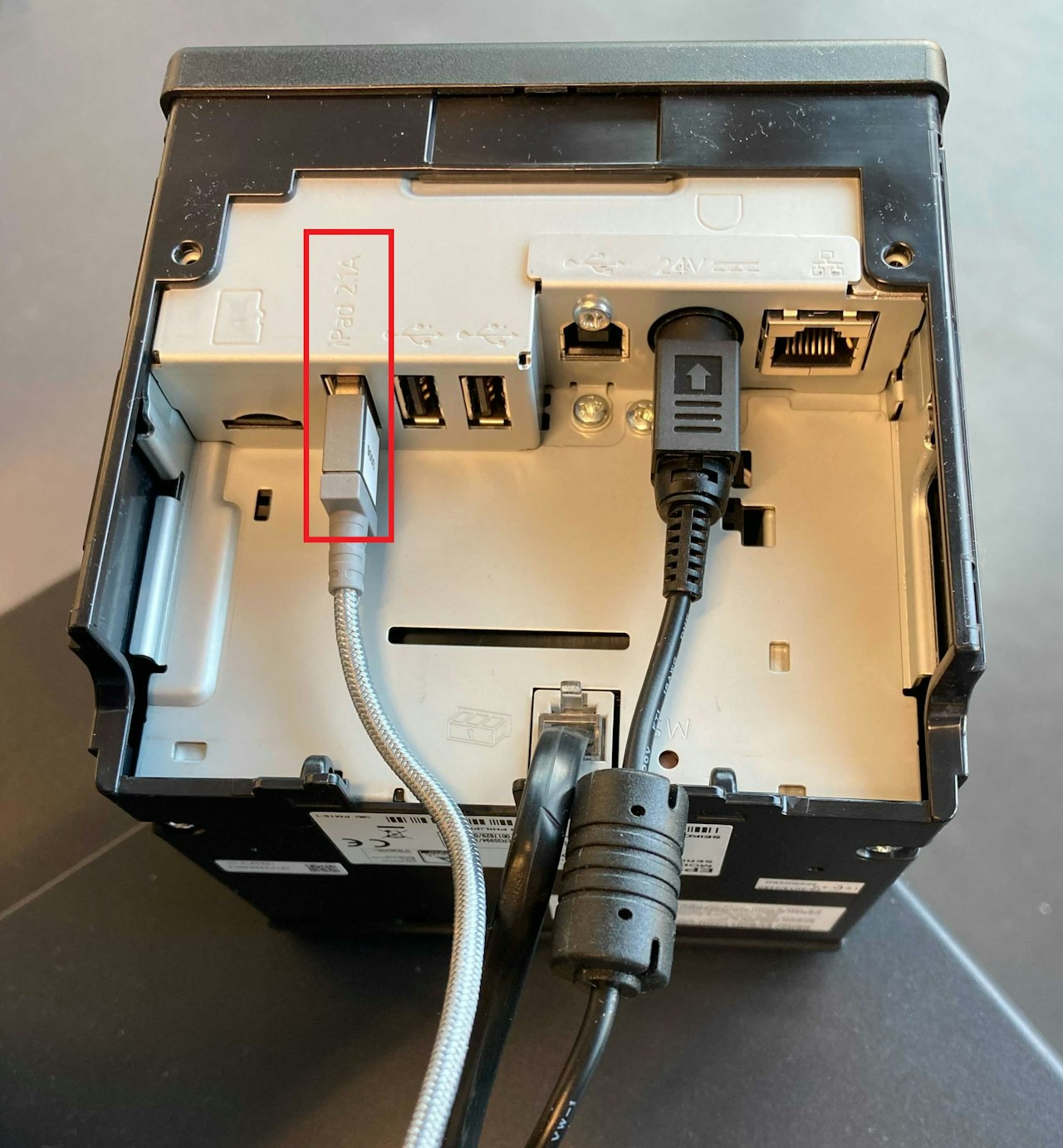 The Epson TM‑m30II‑H can be connected to the iPad via Bluetooth or directly with a Lightning cable. For instructions on connecting via Bluetooth, see: Connecting the receipt printer via Bluetooth.