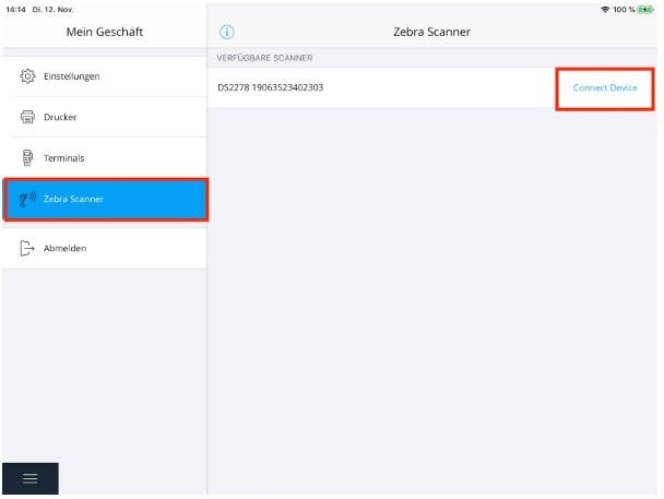 Connect the ZEBRA METAPACE scanner to the app
