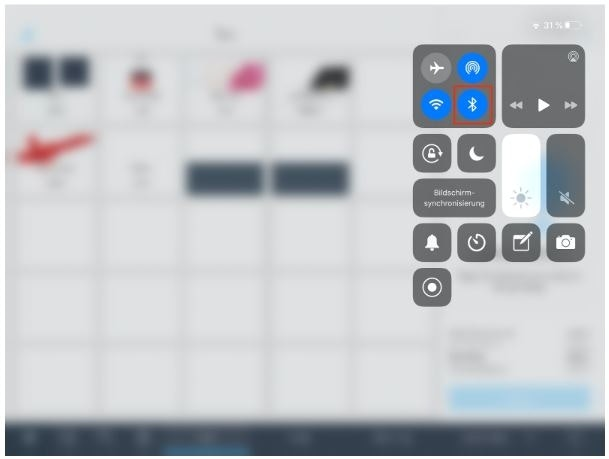 - Before you can connect the scanner to the iPad, make sure Bluetooth is enabled. Open Control Center by swiping down from the top-right corner of the screen (near the battery icon) and ensure the Bluetooth icon is highlighted.