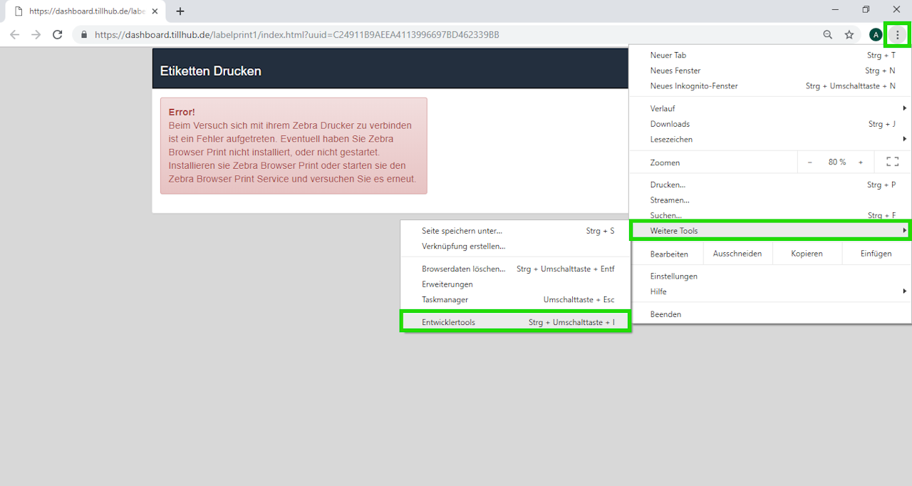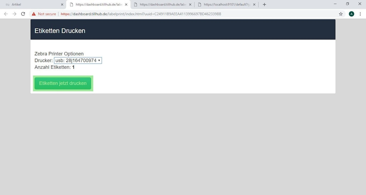 If your company wants to add custom labels to your products, you can do this using the dashboard and the Zebra GK420d printer. This article shows you step by step how to print your own labels. Green-highlighted areas (in the original guide) indicate the referenced features or buttons. Before we begin, please download “Zebra Setup Utilities for Windows” and “Zebra Browser Print”.