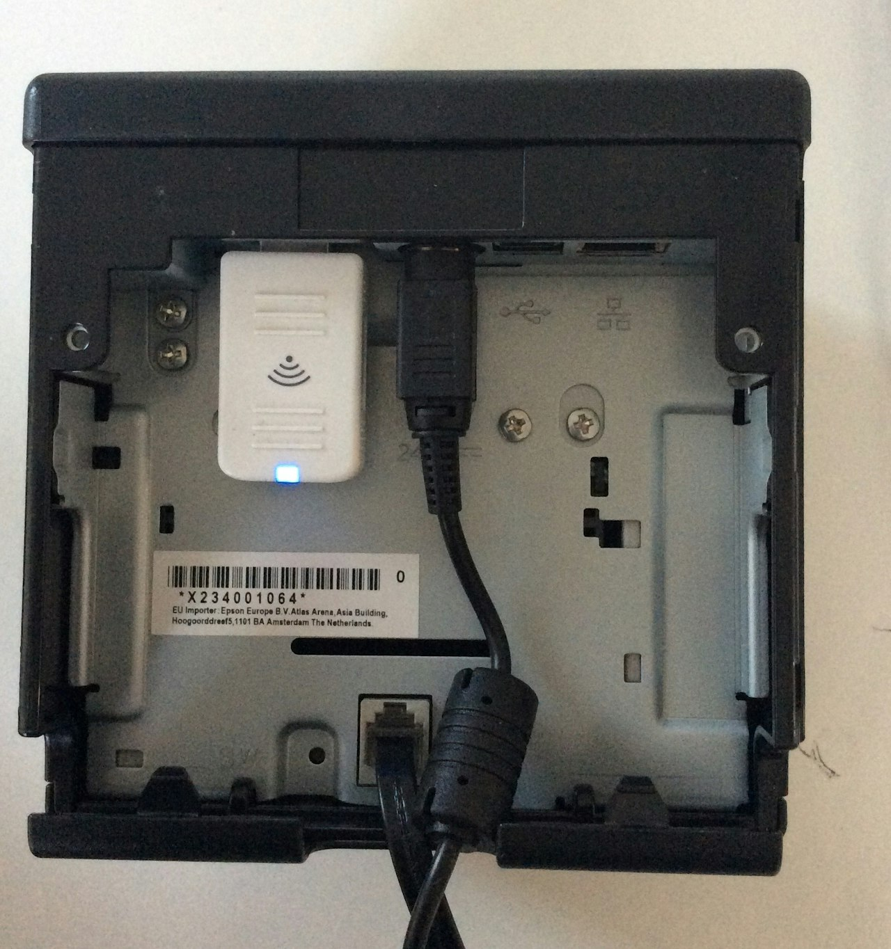 Note: If your printer is the Wi‑Fi model, plug the Wi‑Fi dongle (web stick) into the printer’s USB port.