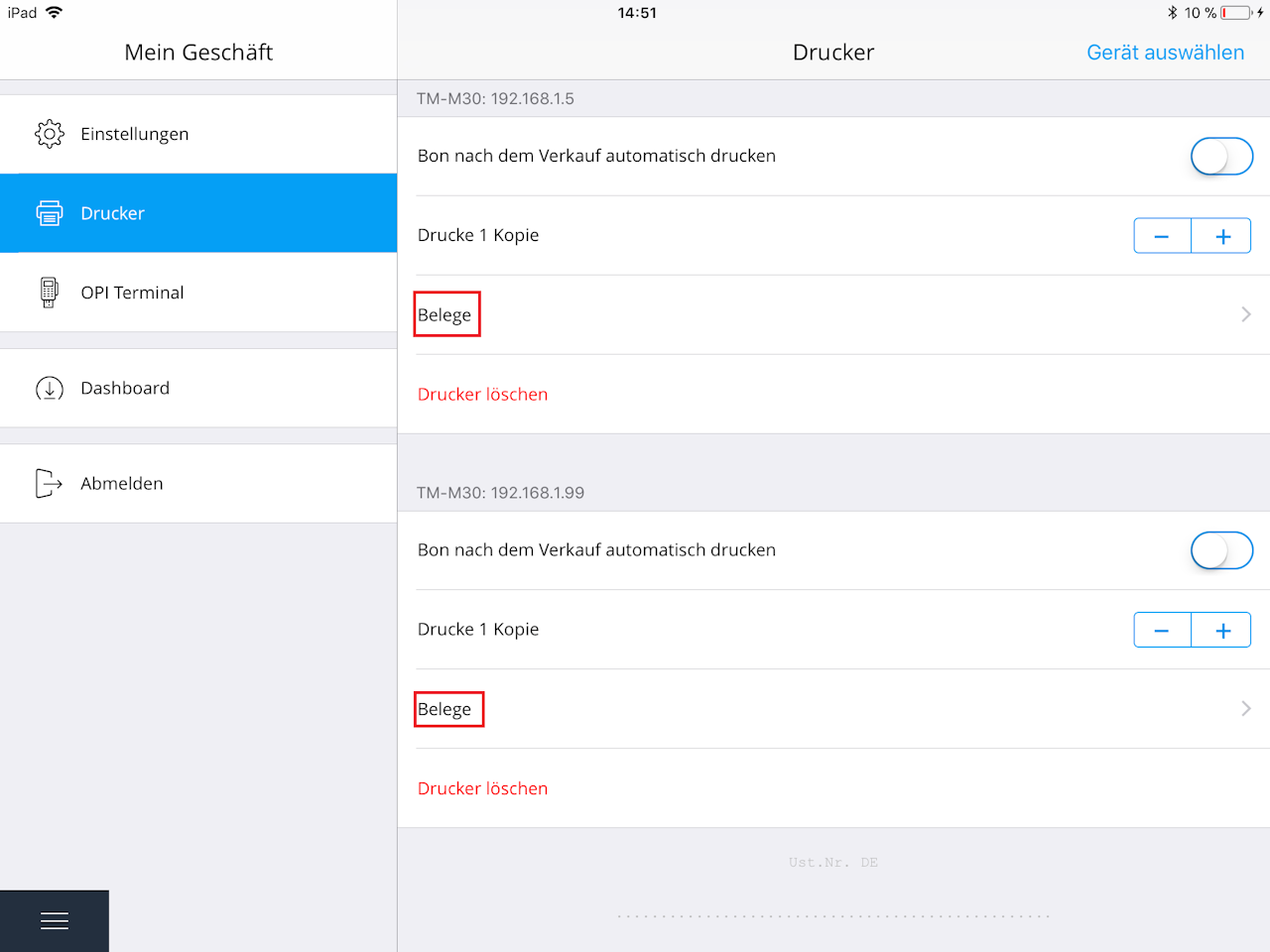 - Next, add a second receipt printer. Tap Select device again at the top right.