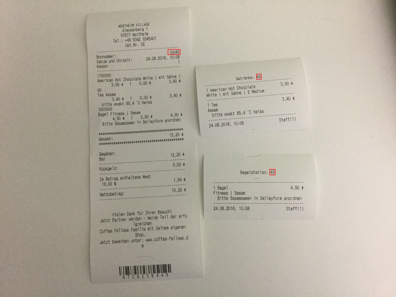 6. If everything is set up correctly, the receipts should print as described above. Receipts can be matched to the transaction by the last digits of the receipt number.