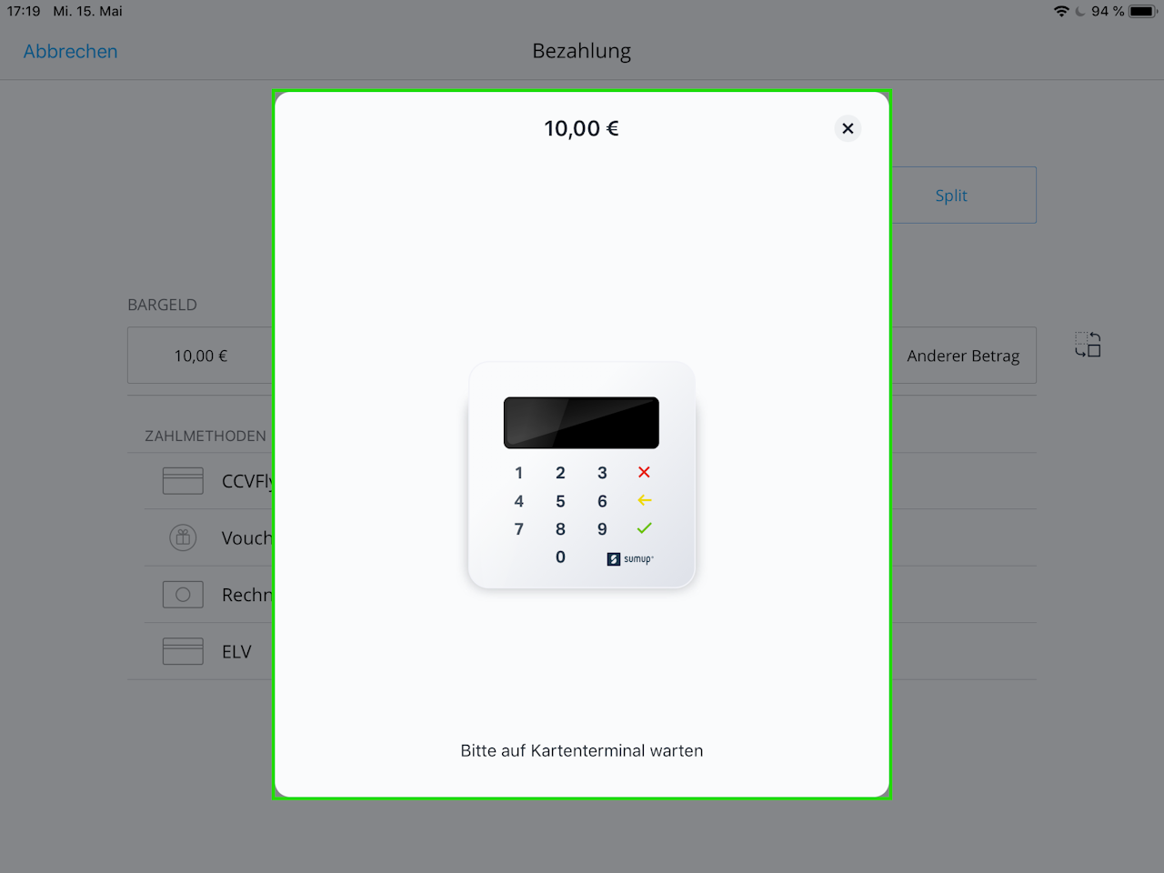 All payments via debit, Visa, Mastercard, etc. will now be routed to the SumUp Air.