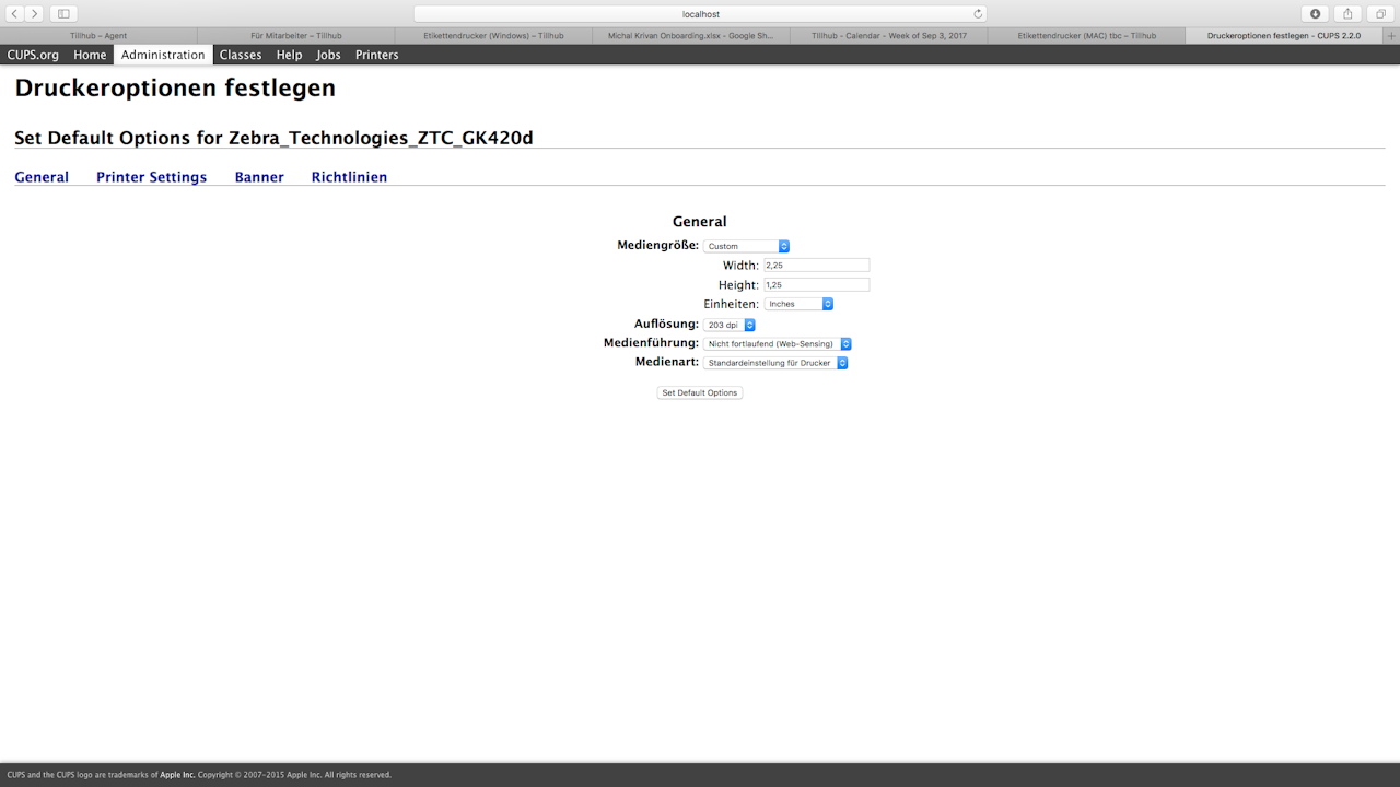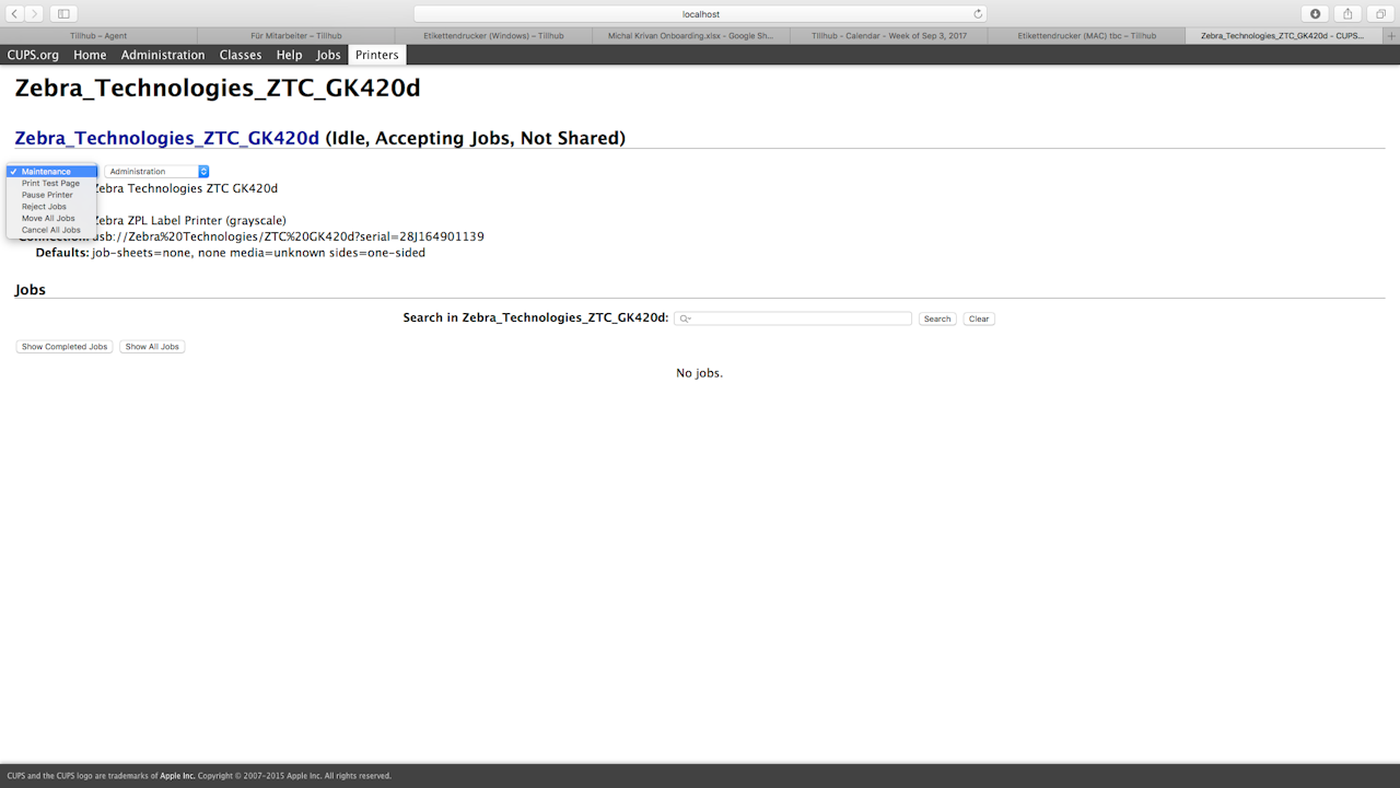 Your Zebra label printer is now set up and ready to use. Under “Maintenance” and “Administration” you can change settings if needed.