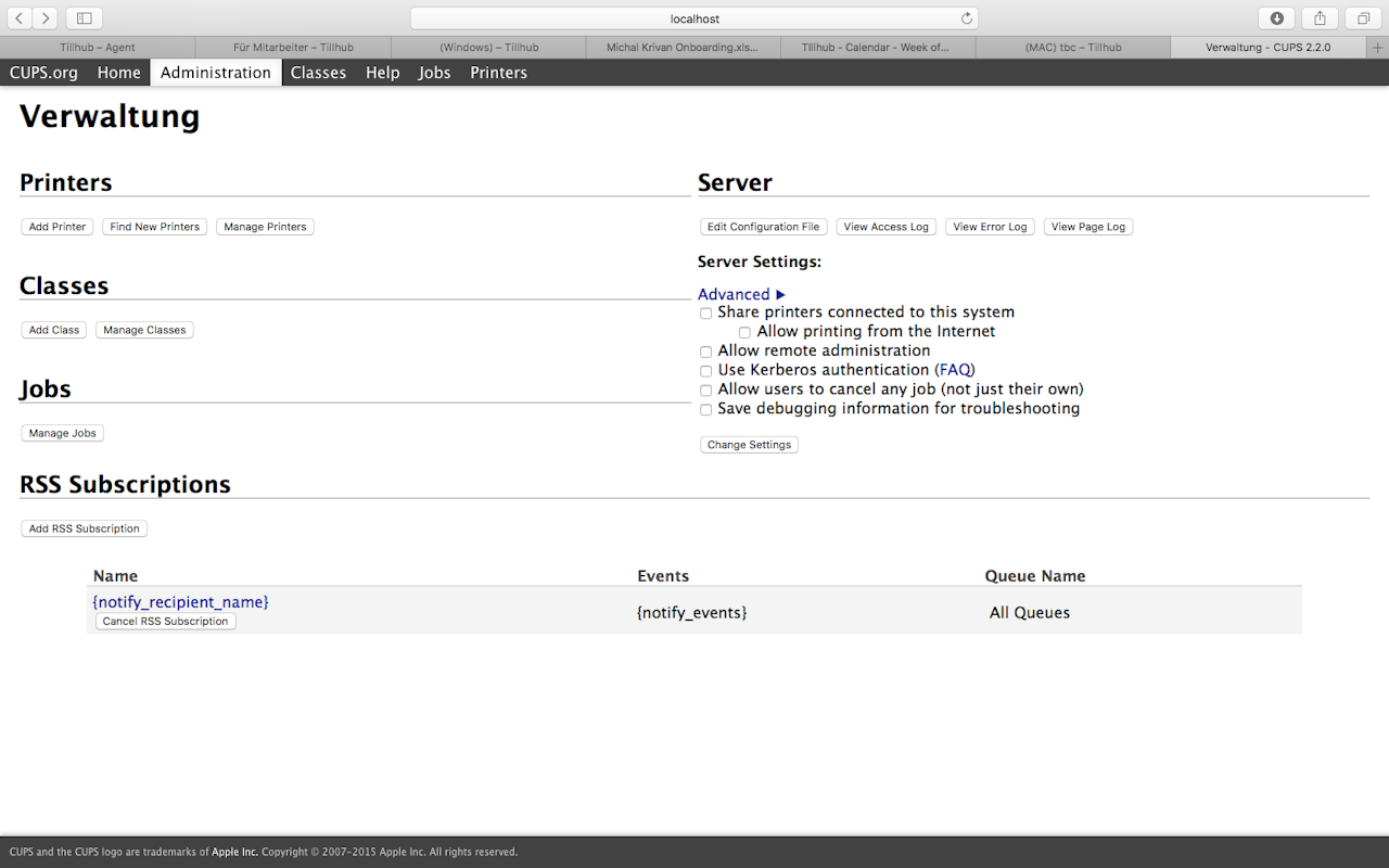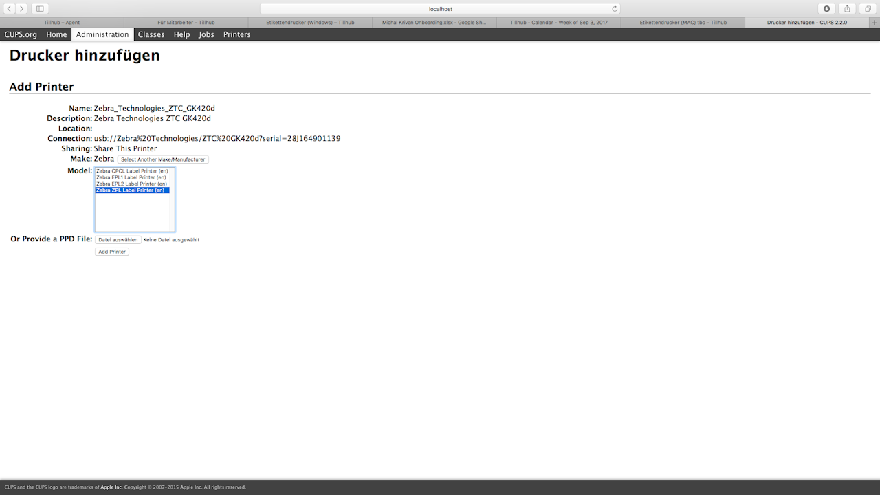 If you are using Safari on macOS or Firefox on Linux, enter http://localhost:631, or for newer versions, http://localhost:631/printers/.