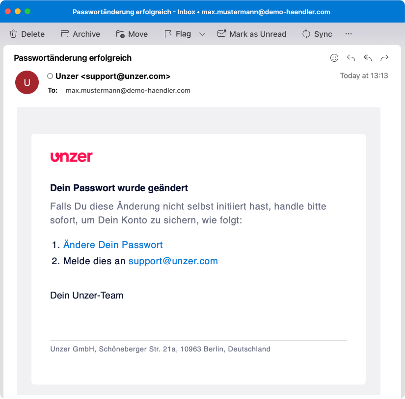 Zusätzlich erhalten Sie eine E-Mail, die Sie über die Passwortänderung informiert.